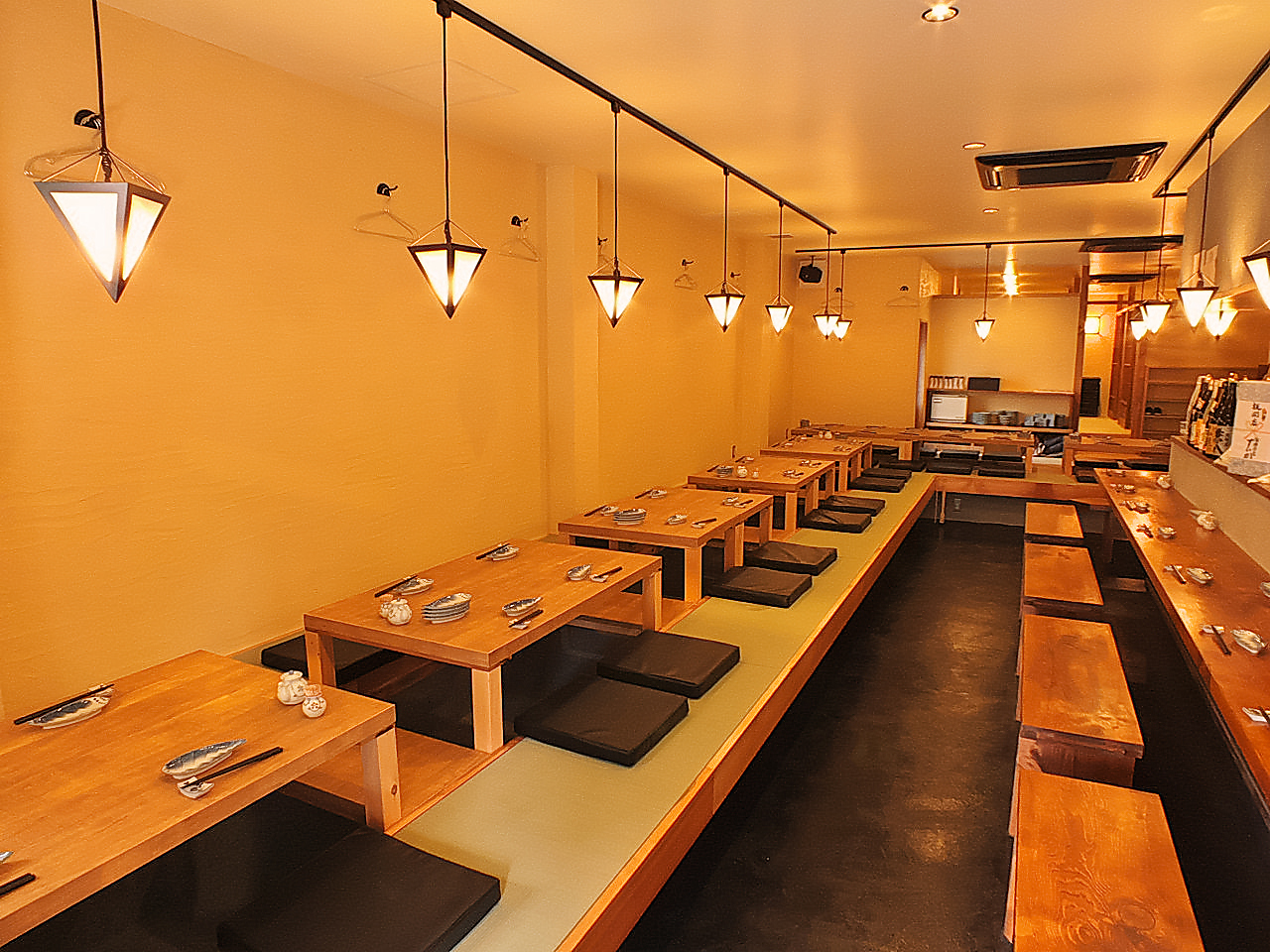 4名様~最大30名様でご利用いただける掘りごたつ席を、奥には個室も完備。